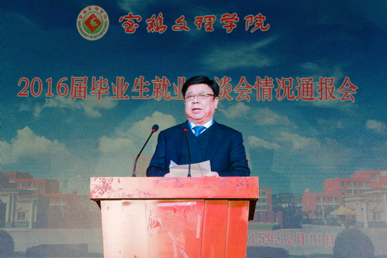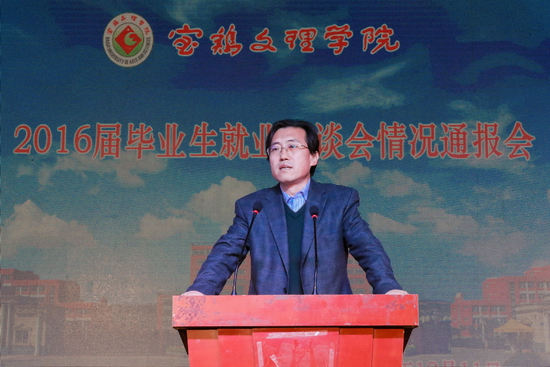 12月11日晚,我校举行2016届毕业生就业洽谈会情况通报会。校党委书记白黎、校长司晓宏、省教育厅高校学生工作处副处长唐澍、宝鸡市教育局局长苏永兴、宝鸡市人力资源和社会保障局副局长杨天明等领导出席了情况通报会。党委副书记米晓东主持情况通报会。毕业生就业指导服务中心主任李周让通报了2016届毕业生基本情况和洽谈会准备情况。