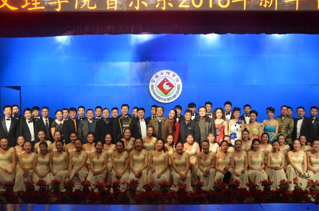12月22日晚,音乐厅内座无虚席,气氛热烈,音乐系师生用美妙的歌声、乐声为我校师生提前送上了美好的新年祝福。校长司晓宏、宝鸡音乐家协会主席团成员、宝鸡市音乐界人士、我校部分职能部门、院系领导与五百余名师生一起观看了音乐系2016年新年音乐会。