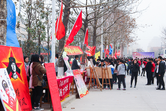 广大青年学生积极响应,结合专业特色,开展了形式多样的学雷锋志愿服务活动。数学与信息科学学院组织学生开展“真爱进校园”无偿献血志愿服务活动;美术学院以“雷锋精神手印点赞”为主题,通过自制漫画雷锋、雷锋灯谜等形式向同学们宣传雷锋精神;政法学院举办了“学习雷锋精神,最美志愿,法律为伴侣”的知法普法活动;化学化工学院开展了利用化学药品试剂清除衣服污渍现场演示活动;地理与环境学院开展了四为园树牌维护、植物地理知识讲解活动;文学与新闻传播学院、经济管理学院、体育系进行专业资格知识宣传活动;机械工程学院开展了“献爱心志愿义捐集温暖充满人间”主题活动;电子电气工程学院、物理与光电技术学院、计算机学院设置了服务点,向广大师生提供小家电故障诊断、维修等服务;教育学院开展了“人文精品小班关爱留守儿童”成果展示活动;哲学系开展“以书易书”图书交换活动;历史文化与旅游系开展了“青铜知识进校园”的宣讲活动;外国语言文学系开展了“我与雷锋有个合影”的主题活动;音乐系以快闪的形式载歌载舞宣扬雷锋精神。