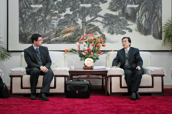 3月23日上午,德国凯勒教学公司总裁Reckermann及China Window国际信息公司董事长高鹏博士一行四人来我校交流访问,洽谈合作事宜,双方在图书馆801会议室召开座谈会。校长司晓宏在接待室会见了来访客人。