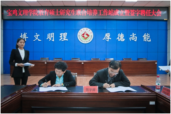 4月13日,宝鸡文理学院教育硕士研究生联合培养工作站成立暨签字聘任大会在甘棠厅召开。校长司晓宏出席会议,副校长赵荣侠主持会议。