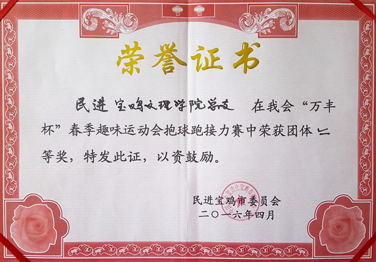本次活动由民进宝鸡市委会主办,我校民进总支协办。会后民进省委、市委会对我校校园环境、校园文化建设给予赞扬,并为运动会提供支持的校办、统战部、保卫处、体育系、后勤集团等部门表示感谢。(民进总支 文/刘素红)