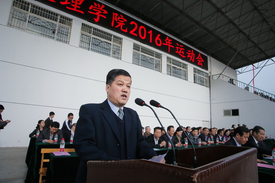 司晓宏代表学校党政向运动会的顺利召开表示热烈祝贺!向参加运动会的全体运动员、裁判员、教练员以及全体师生表示亲切的问候!他说,大家到大学里来接受教育,其核心的目的是为了掌握知识、拓展心智、提升能力,促进自身素质德智体美全面发展,而体育则是强健体魄、培育心智的极为有效的途径。在过去的一年里,学校高度重视体育工作,积极改善体育设施和条件,激发和促进了广大师生员工积极参加体育锻炼的热情和兴趣。司晓宏在讲话中提出五点希望:一是希望同学们能够由衷的热爱体育,强化自己的体育信念与体育兴趣,让坚持体育锻炼伴随生命的始终;二是希望学校的体育教学和体育工作能够不断地深化改革、勇于创新,为提升学校的体育竞技水平、促进师生的身心健康发展做出应有的贡献;三是希望在此次运动会上,全体运动员发扬“更快、更高、更强”的奥林匹克精神,奋勇拼搏,赛出水平,赛出风尚;四是希望全体裁判员严守规则,公正裁决,公平公正地做好运动会的评判工作;五是希望全体观众遵守纪律、文明观赛、为运动会营造良好的氛围。