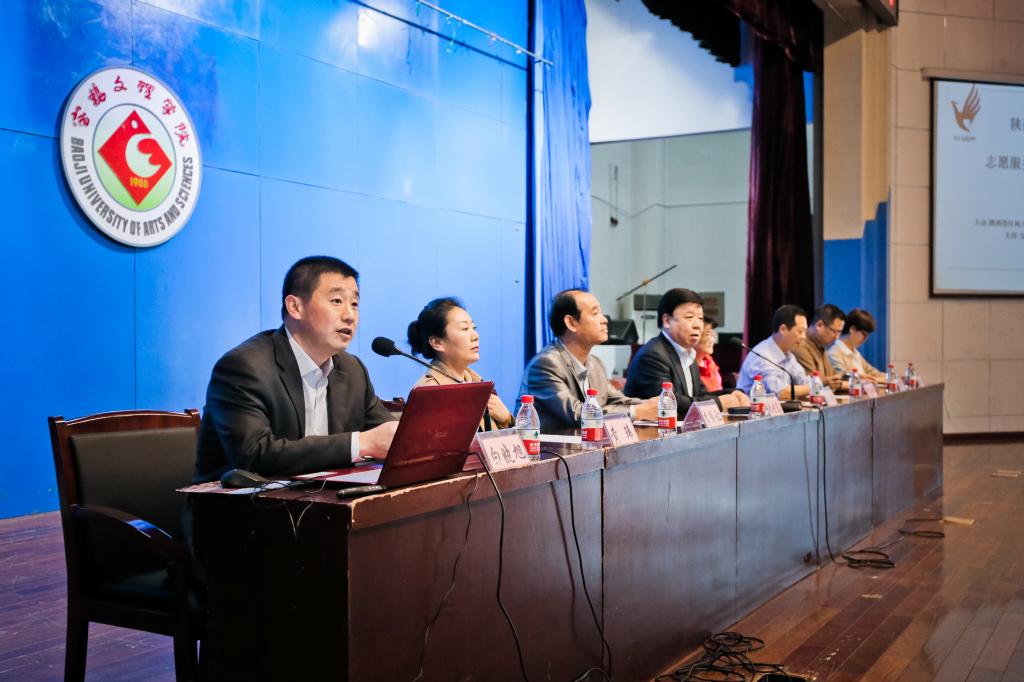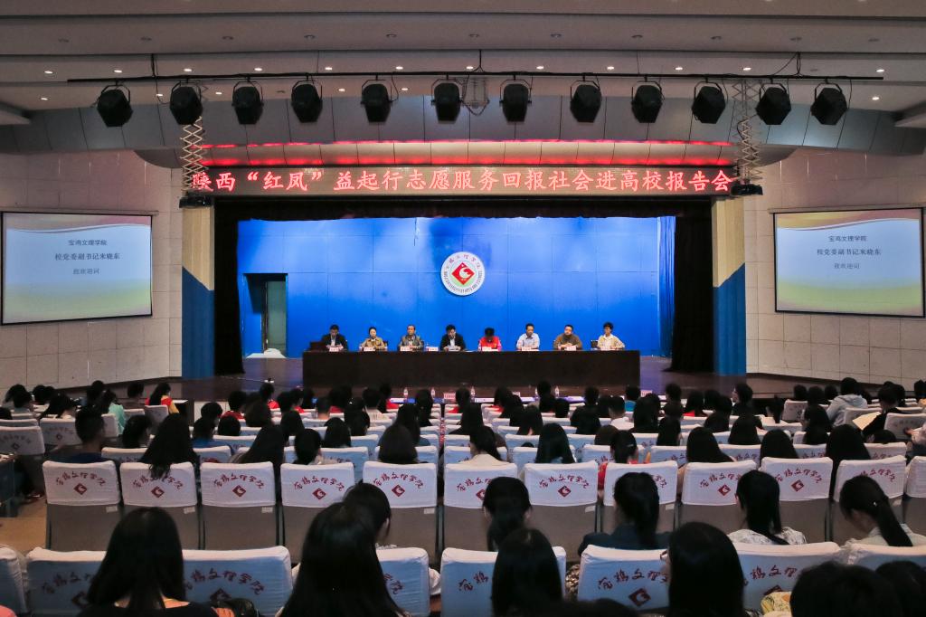 4月26日下午,陕西“红凤”益起行志愿服务回报社会进高校报告会在我校音乐厅举行。校党委副书记米晓东,学工部部长、学生处处长李周让,学工部副部长、校团委书记黄玮,宝鸡市文明办综合科科长李金科,陕西红凤工程志愿者协会班理、邹彩珍,陕西普惠青年志愿服务中心副主任汪子阜,金渭两区妇联、妇女之家、巾帼志愿服务队、市志愿者协会的代表以及我校手牵手红凤志愿者协会成员,在校“红凤工程”受助生,辅导员、学生代表300余人参加了报告会。报告会由学生处副处长白晓旭主持。