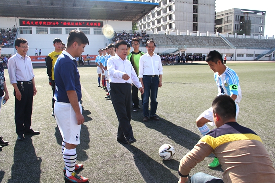 4月27日下午,由校团委主办、体育系团总支承办的我校2016年“酷锐运动杯”足球联赛在新校区体育场拉开帷幕。校党委副书记米晓东出席开幕仪式并为联赛开球。校党委学工部部长、学生处处长李周让,体育系党总支书记刘崇学,主任吴长稳,化学化工学院党总支书记李建峰,校党委学工部副部长、团委书记黄玮,地理与环境学院党总支副书记于建伟,化学化工学院党总支副书记王大浩,团委副书记赵昕出席开幕仪式。开幕仪式由校团委文体部部长张晓宏主持。