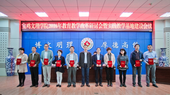 5月12至13日,我校在新校区木铎厅和甘棠厅召开2016年教育教学改革研讨会暨实践教学基地建设会议。校长司晓宏,副校长傅志军,宝鸡市教育局副局长杨存科,陕西师范大学教务处处长李贵安,西安石油大学石冬莲出席会议,傅志军主持开幕式,教务处处长王富平主持闭幕式。
