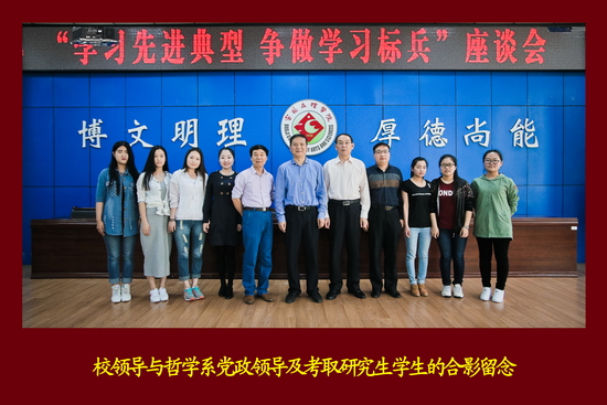 座谈会上,哲学系党总支书记张全省和化学化工学院院长杨得锁分别介绍了本院系的考研情况;郭锋航和张孟民分别代表教师发言;哲学系和化学化工学院两个“明星宿舍”学生代表田甜甜和赵鹏分别分享了自己的考研历程,交流了经验;文学与新闻传播学院张越同学代表2013级学生发了言。