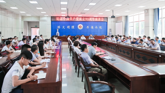 6月23日下午,我校隆重召开庆祝建党95周年座谈会。校党委书记白黎、党委职能部门负责人、机关党委书记、各党总支书记、各院系教师党员、学生党员代表60余人参加了座谈会。会议由校党委副书记李全武主持。