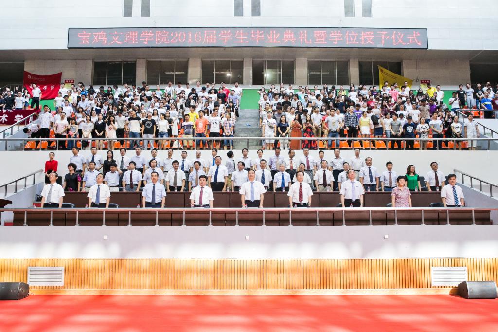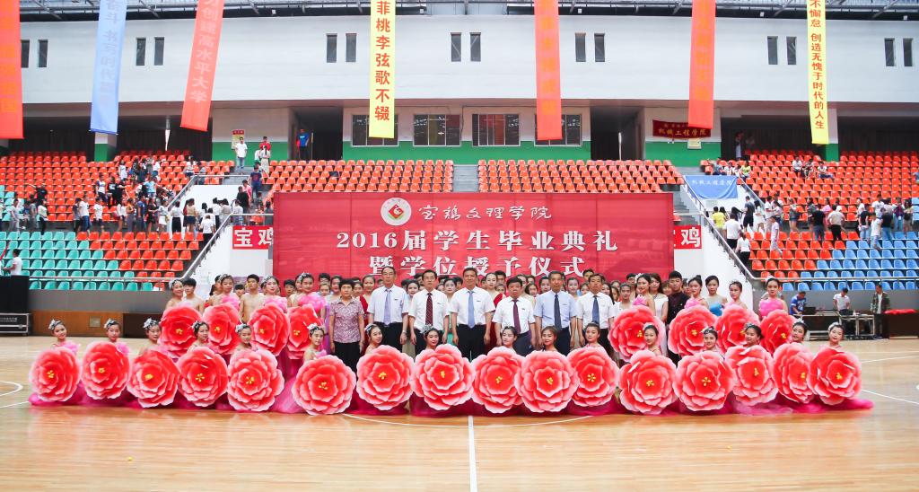 6月27日上午,我校在宝鸡市体育馆隆重举行2016届学生毕业典礼暨学位授予仪式。校党委书记白黎,校长司晓宏,党委副书记米晓东、李全武,副校长傅志军、赵荣侠、杨子元等出席毕业典礼暨学位授予仪式。毕业典礼暨学位授予仪式由米晓东主持。