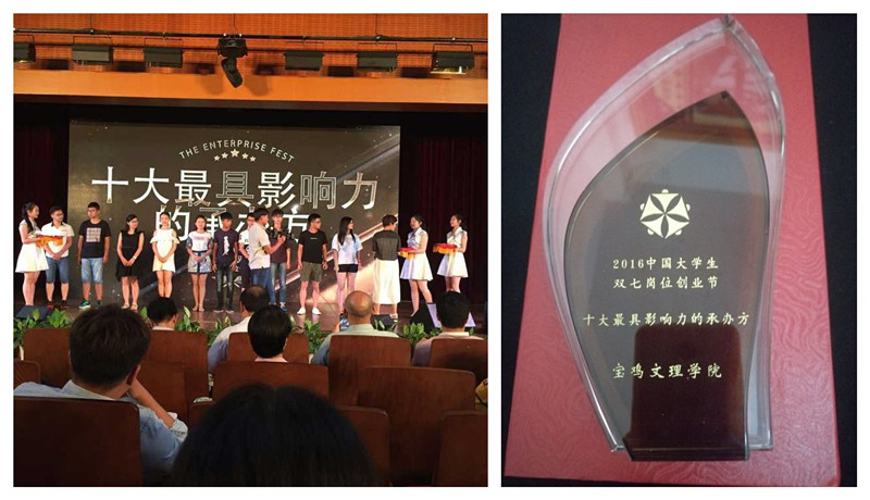 我校机械工程学院2013级工业设计2班代颖颖代表我校参加活动并且取得佳绩。开幕式上,上海交通大学党委副书记朱健进行致辞,零点集团、水晶门创始人袁岳博士以及三位企业创业者在活动现场为全国学生进行了创业思想分享。来自全国40多个高校的61名大学生参加了活动。我校荣获“2016年中国双七岗位创业节”荣获“十大最具影响力承办方”荣誉称号。