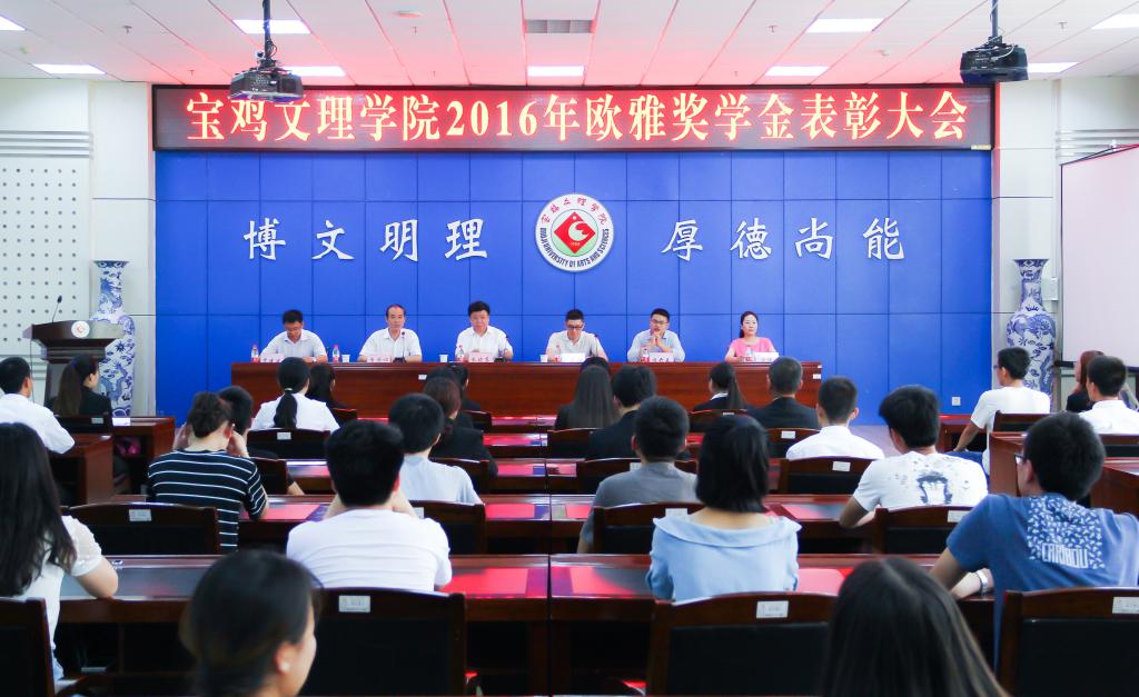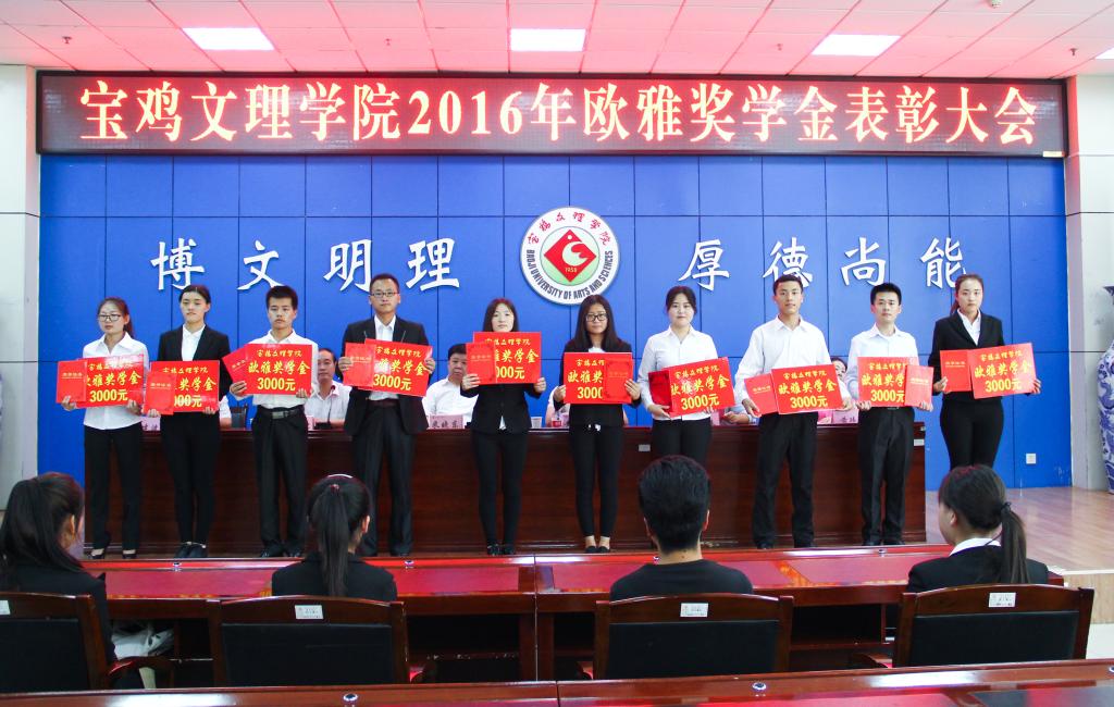 学工部副部长、团委书记黄玮宣读了《宝鸡文理学院关于表彰2016年”欧雅奖学金”获得者的决定》。双方领导为获奖学生颁发了奖金和荣誉证书。政法学院学生袁佩媛代表获奖学生汇报了一年来的思想、学习和生活,表达了对母校和上海欧雅壁纸集团的感谢与继续努力学习的决心。