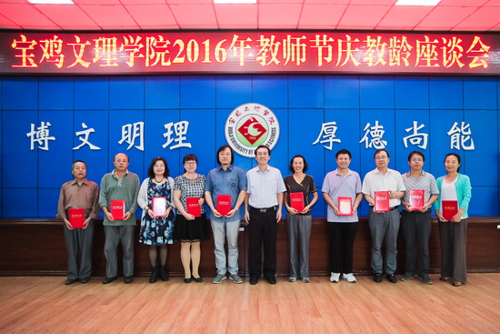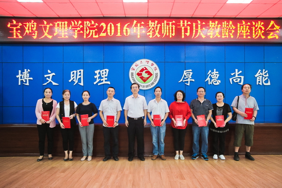 9月9日下午,学校在新校区甘棠厅召开2016年教师节庆教龄座谈会。校长司晓宏、校党委副书记傅志军出席会议并向年满25年、30年教龄的教职工颁发了荣誉证书。傅志军主持会议并作总结讲话。
