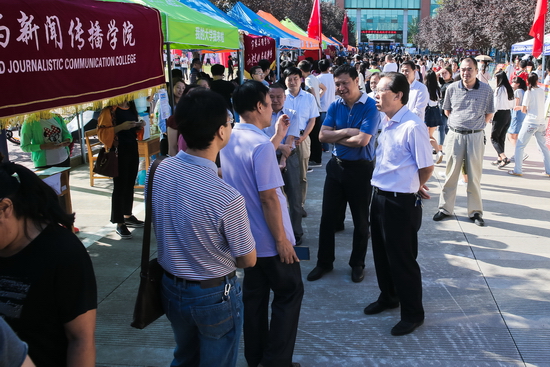 10日上午,校党委书记白黎,校长司晓宏,党委副书记傅志军、栾宏,副校长赵荣侠、杨子元、王富平在新老校区及汽车东站、火车站和火车南站等校内外迎新现场检查指导工作并慰问工作人员和学生志愿者。校领导与部分新生和家长驻足交谈,询问了他们对学校及迎新工作的整体感觉和意见,并鼓励新生要学会自立、好好学习,不辜负家长期望。各位领导对今年的迎新工作表示肯定,并表达了教师节的慰问,听取了各院系和相关职能部门的相关工作汇报,强调各单位要加强沟通、密切配合,落实好迎新工作中的关键环节。