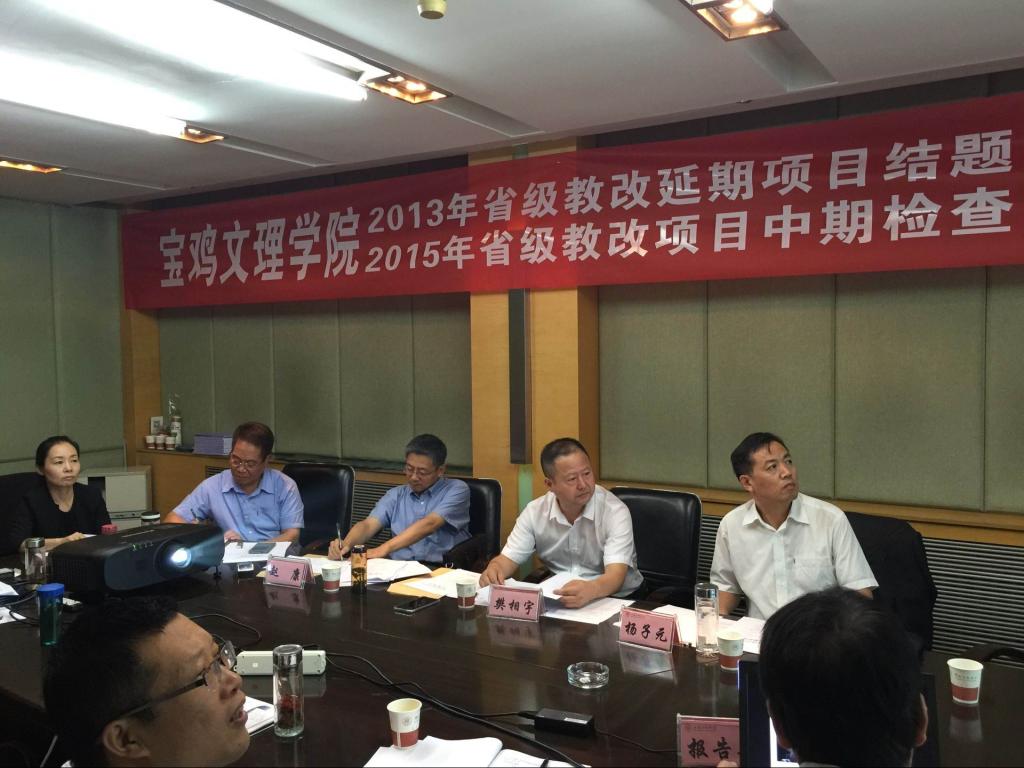 9月18日,我校2013年省级教改延期项目结题、2015年省级教改研究项目中期检查评审会在陕西师范大学学术会议厅举行。西安理工大学研究生院院长赵康教授、西安邮电大学教务处长樊相宇教授、西北大学教务处长曹明明教授等专家参会。副校长杨子元教授主持评审会。