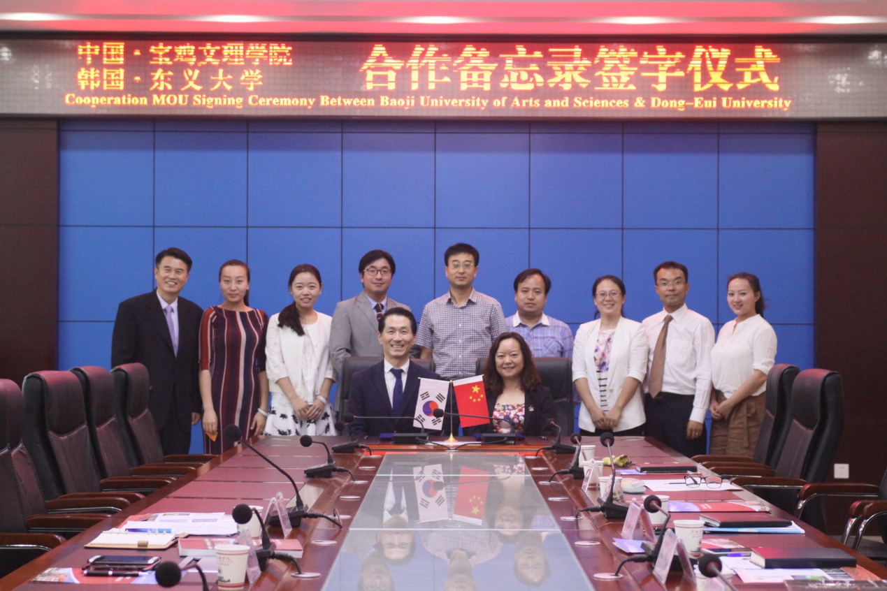 9月23日下午,韩国东义大学国际交流处处长曹永湖一行来我校交流访问。双方在新校区图书馆801会议室进行了会谈并举行了合作备忘录签字仪式。外事办公室主任王永君、教务处副处长俱国鹏、文学与新闻传播学院副院长白志勇、历史文化与旅游系旅游管理专业教研室主任徐丽平等参加了会谈。