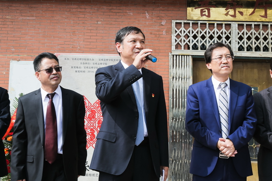 司晓宏发表了热情洋溢的致词。他指出,雪彩娟是我校外语系(88级)毕业学生,她虽然不是美术专业科班出身,但她自幼受凤翔民间艺术的熏陶,酷爱剪纸艺术,刻苦好学,毕业后坚持学习剪纸艺术,逐步从一名剪纸爱好者成长为一名受到社会各界广泛关注的剪纸名家。他的作品在宝鸡、陕西、全国多次荣获大奖。雪彩娟剪纸艺术展既是对母校的情谊,对校友的情谊,也是对祖国67周年华诞的献礼。当今的教育方针是全面发展,雪彩娟的这种才艺正是学生全面发展的表现。他衷心祝愿“情系母校——校友雪彩娟剪纸艺术作品展览”圆满成功!