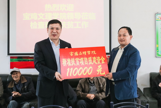 会上,我校为纸坊沟村捐赠了精准扶贫项目援建资金11万元,为“三无户”幸福园捐赠慰问金1万元。