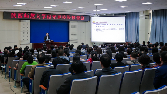 会后,程光旭校长在新校区木铎厅为全校处级干部,各院系教学、科研秘书,教务处(评建办)等部门工作人员200余人作了题为《高等教育的新形势与教学改革》的学术报告,报告会由校长司晓宏主持。程光旭分别从新时期高等教育形势及国内大学改革动态、现代大学的功能及大学办学模式简介、审核评估与大学内涵建设、本科生教育面临的新挑战及改革思考等四个方面进行了阐述与讲解。程校长的报告,高屋建瓴、深入浅出,受到了与会同志的一致好评。报告会后,司晓宏对程光旭的精彩报告表示感谢,希望我校与会人员要认真学习领会程校长的报告内容,结合自身学习工作实际,将其报告精髓运用到自己的日常工作中去。