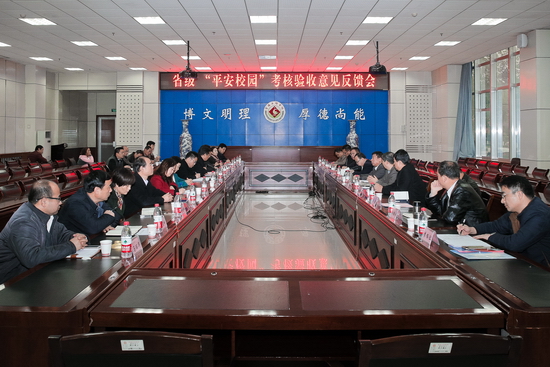 11月8日,由陕西省委高教工委委员、稳定办主任张玉明带队,西安邮电大学副校长贾明远担任组长的“陕西省平安校园”检查验收组一行10人来我校对2016年省级“平安校园”创建工作进行了检查验收。我校在新校区甘棠厅召开了省级“平安校园”创建检查工作汇报交流会和情况反馈会。校长司晓宏、校党委副书记傅志军、栾宏,副校长赵荣侠、杨子元、王富平出席了汇报交流会和情况反馈会。省委高教工委稳定办副主任陈国栋、宝鸡市公安局调研员高军、宝鸡市公安局高新分局副局长蔺培滋、高新分局经文保科科长冯润勋,我校党办、宣传部、学工部、团委、校办、教务处、学科建设与研究生教育管理处、科技处、教学设备与实验室管理处、基建处、保卫处、后勤管理处、后勤集团等部门负责人参加了汇报交流会和情况反馈会。
