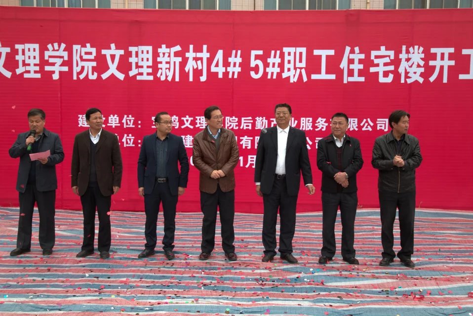 司晓宏代表学校党政班子、职工楼住户和学校21000多名师生员工对4#、5#职工楼的开工奠基表示热烈的祝贺!他指出我校文理新村4#、5#职工楼2012年启动,2013年5月10获渭滨区发展改革局立项批复,2014年5月22日通过宝鸡市规划局的总平面规划图审批,2015年开始工程施工和监理的招标工作,经过1年多时间,职工楼工程完成了前期各项准备工作,终于开工建设,对此他由衷的感到高兴。司晓宏对大秦建设公司中标承建职工楼工程表示祝贺,对该公司为在工程建设中所做出的庄重承诺表示赞赏和感谢。他指出,为了最大限度地保护教职工的利益,也为了确保职工楼能够在施工阶段顺利开展和按期完工,学校要求大秦建设公司作出几项承诺:一是由公司直接组织工程施工,不得转包他人;二是按要求向学校缴纳1000万元的履约保证金;三是由大秦建设公司垫资完成2层地下车库工程和2层主体工程及基础工程验收合格后,学校才能按照月进度支付工程款。对上述要求大秦建设公司做出了正式的书面承诺。司晓宏代表学校和住户对施工单位提出了四点希望:一是要信守承诺,按照承诺有条不紊地推进工程建设;二是要确保工程质量,树立质量优先的理念,对建筑材料严格把关,严格按照施工规范组织施工,做到一丝不苟,精益求精,为广大住户负责;三是要确保工程进度,按照施工合同约定按期交工,为文理新村职工楼住户交一份满意的答卷;四是要确保施工安全,杜绝安全事故发生。同时他希望监理单位要切实发挥社会职责与责任,代表学校和住户对施工质量按照国家工程建设标准严格监督。代建单位要继续做好相关协调工作,选派经验丰富、责任心强的工程管理人员,协助我校搞好工程现场管理工作。