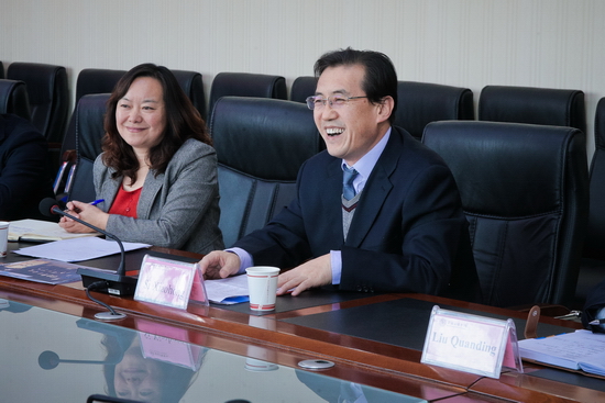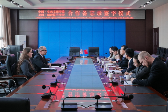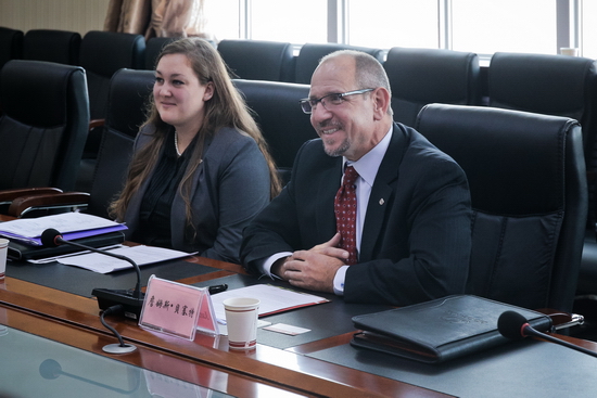 11月2日,美国瑞欧格兰大学副校长詹姆斯.贝赛特一行2人来我校访问,两校在图书馆八楼会议室举行教育交流合作座谈会并签署了校际合作备忘录。校长司晓宏出席了会议并签署合作备忘录。座谈会由外事办公室主任王永君主持。