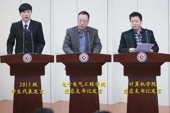 学生处处长、就业指导服务中心主任李周让宣读了《关于表彰2016届毕业生就业工作先进单位的决定》。计算机学院党总支书记赵智劳、电子电气工程学院党总支书记张小龙分别交流了就业工作经验,文学与新闻传播学院毕业生薛飞作了表态发言。