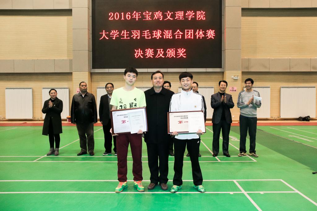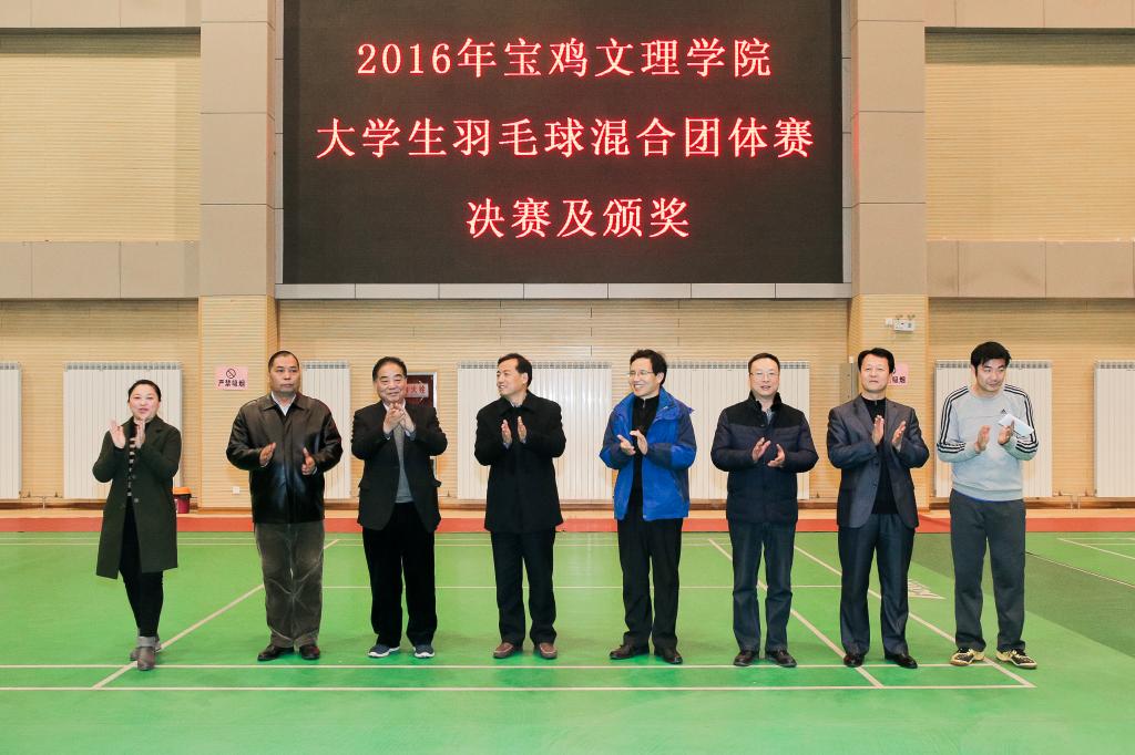 11月28日至12月2日,由教务处主办、体育系承办的2016年宝鸡文理学院大学生羽毛球混合团体赛在体育馆隆重举行。副校长杨子元,机关党委书记、系负责人强晓艺,体育系党总支书记刘崇学、电子电气工程学院党总支书记张小龙,历史与文化旅游系党总支副书记康少峰,地理与环境学院党总支副书记于建伟,美术学院党总支副书记官丽萍等出席闭幕式并为获奖代表队颁奖。