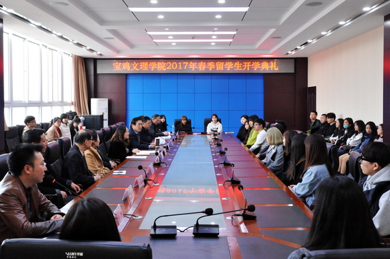 2月28日,学校在图书馆801会议室举行春季留学生开学典礼,典礼由外事办主任王永君主持,校长司晓宏出席典礼并作重要讲话。司晓宏对留学生来校学习表示热烈欢迎和衷心祝福,他向学生们介绍了学校的办学历史、学科建设、专业特色、人才培养等方面取得的成就以及宝鸡的文化历史等基本情况,并介绍了我校与国外高校开展合作项目的进展情况,他希望同学们能珍惜留学机会,努力学习。