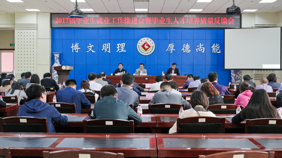 4月18日下午,学校在新校区召开2017届毕业生就业工作推进会暨毕业生人才培养质量反馈会,校长司晓宏、党委副书记栾宏出席会议并作重要讲话,副校长杨子元主持会议并作总结讲话。