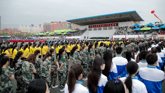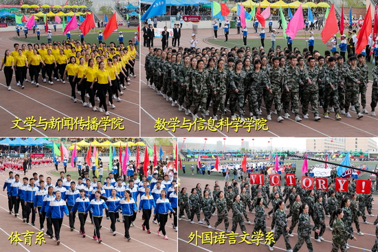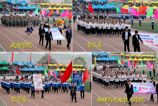 4月19日上午,我校2017年运动会开幕式在新校区体育场举行。校长司晓宏出席开幕式,校党委副书记栾宏致开幕词,副校长杨子元主持开幕式。