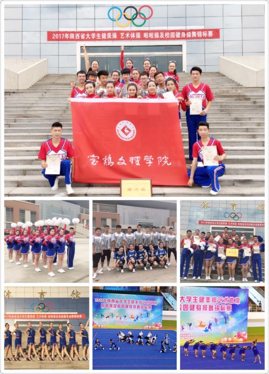 由陕西省教育厅主办,省学生体育协会、西安邮电大学承办的“2017年陕西省大学生健美操、艺术体操、啦啦操及校园健身操舞锦标赛”于2017年6月5日—7日在西安邮电大学长安校区体育馆隆重举行。来自全省43所高校的1000多名运动员参加了本次比赛,整场赛事规模宏大,气氛热烈。我校由黄龑、张雷、沈一岚、齐娇娇四名教练带领甲、乙两组51名运动员参加比赛。队员们在比赛中体现了奋勇争先、不甘落后的精神风貌,整场比赛精彩纷呈,动作的挥洒和队形的变化之间展现出无限的青春和与激情,给观众以强烈的震撼。经过三天的激烈角逐,最终甲组获得艺术体操纱巾操第二名、艺术体操集体操第二名及全能赛第二名、健身排舞规定套路第三名、爵士啦啦操第五名、花球啦啦操第六名;乙组获得健身排舞规定套路第二名、健身排舞自选套路第三名、傣族健身舞第三名、Hip-pop街舞第五名、花球啦啦操第八名以及团体总分第六名的成绩。同时我校还获得“体育道德风尚奖”,张雷老师被评为“优秀教练员”,李少伟、韩雪儿同学被评为“优秀运动员”。(体育系 文/张雷 图/沈一岚)