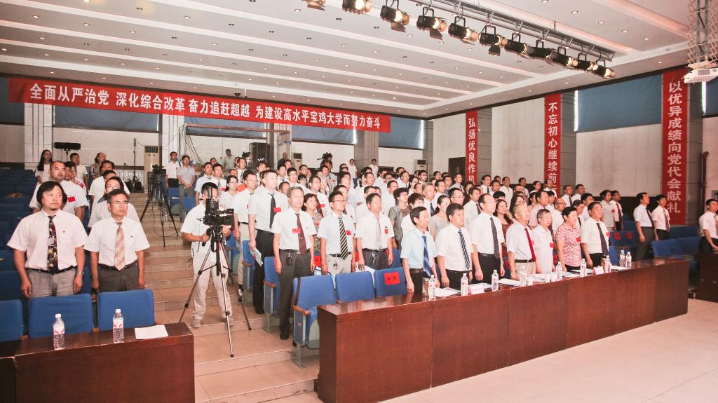 7月21日上午,中国共产党宝鸡文理学院第四次代表大会在新校区音乐厅隆重召开。本次大会是在学校开展巡视整改、迎接审核评估、奋力追赶超越、建设高水平宝鸡大学的关键时期召开的一次十分重要的会议。大会的主题是高举中国特色社会主义伟大旗帜,深入学习贯彻党的十八大、十八届三中、四中、五中、六中全会精神和习近平总书记系列重要讲话精神,全面从严治党,深化综合改革,奋力追赶超越,持续提升办学层次和综合实力,坚定不移地朝着建设高水平宝鸡大学的宏伟目标奋勇前进。