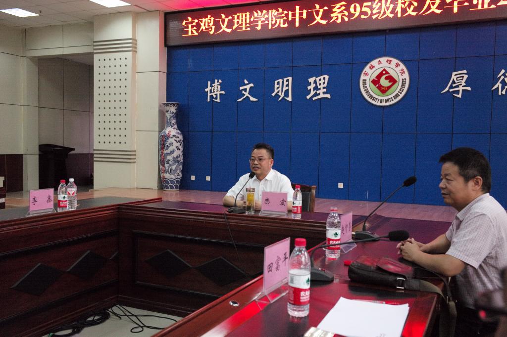 栾宏在致辞中对校友返校聚会表示热烈欢迎,并从办学历史、招生规模、师资力量、办学成就、科研实力、未来目标等六个方面向校友们详尽地介绍了学校的情况。他说,校友是学校的名片,优秀校友更是学校靓丽的名片。在酷热的夏季,同学们带着一颗颗滚烫的心从天南地北返回母校,让人感动。尤其是中文系校友们接连返校,彰显出学校和文学与新闻传播学院强劲的办学凝聚力和向心力。他说,学校现在已经进入到了创办高水平宝鸡大学的关键时期,急需要凝聚各方力量,而历届校友是我校最可靠的人脉资源。上午刚刚结束的中国共产党宝鸡文理学院第四次代表大会,选举出了学校新一届坚强有力的党委、纪委领导班子,而且通过了学校近期和长远发展规划,为学校当下和未来发展指明了方向,学校风清气正,面貌焕然一新,各项事业发展已经进入快车道。他说,任何时候、任何情况下,母校都是校友的坚强后盾,永远的精神支撑。