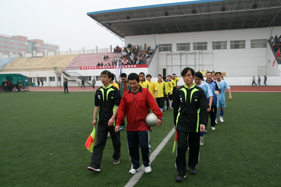 比赛开始前,院工会副主席刘锡让发表了热情洋溢的讲话,并与陕西师范大学工会主席李磊一起为比赛开球。双方球员不畏寒冷的天气,在丝丝细雨中为广大师生奉献了一场精彩而激烈的足球比赛。经过90分钟的激烈角逐,最终双方以5∶5握手言和。