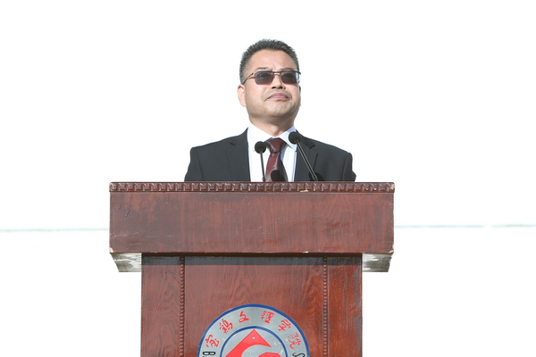 9月11日上午,我校2017级新生开学典礼暨军训动员大会在新校区体育场隆重举行。校党政领导白黎、司晓宏、傅志军、栾宏、赵荣侠、杨子元、王富平、段恒春,中国人民解放军96607部队侯一得大校、孙运堂中校、赵培养少校等出席大会并在主席台就坐。校党委书记白黎为军训团授旗,校长司晓宏致辞。副校长杨子元主持大会。