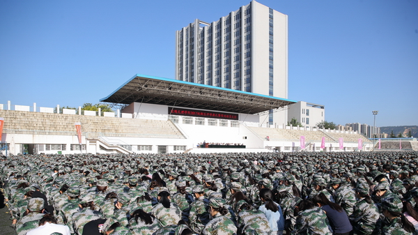 各二级学院总支书记、院长,各职能部门主要负责人,2017级全体新生及承担我校新生军训任务的96607部队军训团全体官兵参加了大会。(教务处 文/刘继文 图/张平)