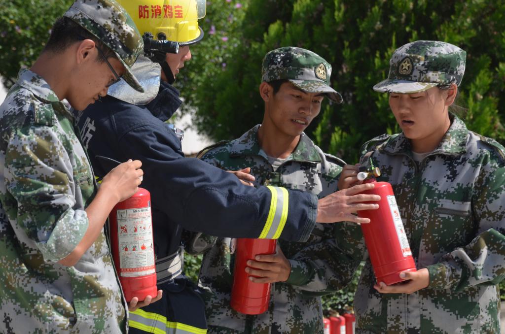 在消防灭火演练环节,消防官兵讲授了如何正确报警和自救逃生、如何使用干粉灭火器、如何扑救初起火灾等基本消防安全知识,强调注意事项并进行了演示。之后,300名同学以多人一组的方式,使用干粉灭火器进行实操灭火。