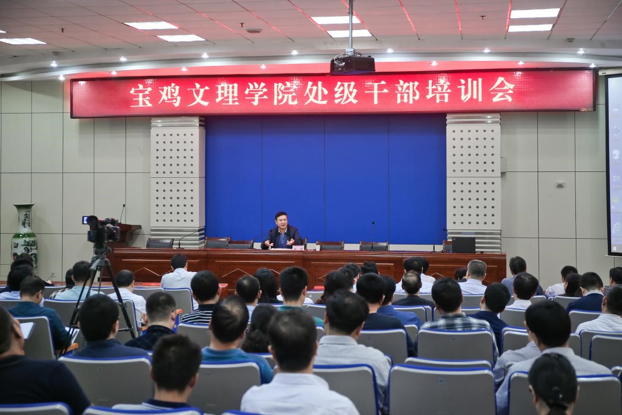 为进一步统一思想、凝心聚力,增强处级领导干部政治意识、大局意识、核心意识、看齐意识,切实提升处级领导干部的党性修养、工作能力和综合素质,为创建高水平宝鸡大学积极贡献智慧和力量,以优异的成绩迎接党的十九大胜利召开。9月22日至23日,我校处级干部培训会在新校区木铎厅举行。培训班由党委副书记栾宏主持,校党委书记白黎,党委副书记傅志军,副校长赵荣侠、王富平出席了培训会。
