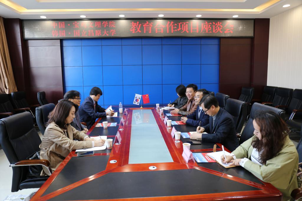 座谈会上,刘全定代表校长司晓宏及国际合作与交流处处长王永君对国立昌原大学的到访表示热烈欢迎。他简要介绍了宝鸡的历史和发展情况以及学校的基本情况,主要就我校国际交流与合作发展现状,特别是近年来与国外高校进行的合作交流项目作了介绍,并表示我校愿意与国立昌原大学在平等协商的基础上开展传统的教育交流与合作项目,拓展和探索开发新的更有前景的教育交流项目。