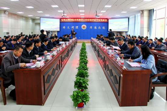 11月6日上午,学校在新校区甘棠厅召开本科教学工作审核评估专家见面会。专家组组长、武汉科技大学党委书记孔建益,专家组副组长、湖南文理学院原党委书记魏饴,专家组成员上海海关学院院长丛玉豪、长春师范大学校长刘春明、内蒙古大学副校长张吉维、首都经济贸易大学副校长王传生、天津科技大学原副校长张建国、中国人民大学教育学院副院长周光礼、北京师范大学地理科学学部葛岳静,专家组秘书西安石油大学高教研究与评估中心主任吴伟、西安邮电大学原教务处处长樊相宇,中国西部高等教育评估中心项目管理员李珍艳等专家组成员出席见面会。宝鸡市人民政府副市长武军、陕西省教育厅高等教育处处长胡海宁、中国西部高等教育评估中心副主任徐菲、陕西省教育厅高等教育处何文来、宝鸡市人民政府何小龙以及我校全体校领导出席专家见面会。会议分两个阶段,分别由副校长杨子元和专家组组长孔建益主持。