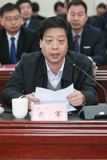 宝鸡市人民政府副市长武军在讲话中介绍了宝鸡市的历史与发展现状。他指出,宝鸡文理学院是宝鸡市唯一一所普通高等院校,宝鸡市委、市政府始终高度重视学校的建设发展工作,把支持学校发展作为科教强市战略的重中之重。市政府将不遗余力支持学校提升办学水平,打造彰显宝鸡文化底蕴、提升城市文化品位的精神人文高地。这次本科教学工作审核评估,对于学校提高教育教学水平和人才培养质量,强化人才培养中心地位,加快建成高水平宝鸡大学具有重要意义。他希望学校以这次评估为契机,认真领会专家组的意见和建议,科学制定有力有效的整改方案,以评促改,以评促建,进一步提升教育教学水平,在创建高水平宝鸡大学的道路上迈出坚实步伐。