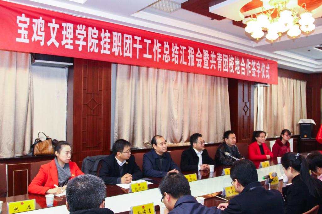 汇报会上,王继萍对栾宏一行表示热烈欢迎,她代表凤翔县县委、县政府对宝鸡文理学院选派优秀团干部到地方挂职锻炼表示衷心的感谢,对挂职团干严于律己、乐于奉献的工作作风给予了高度评价,并希望校地双方以后能进一步加强联系和合作。张晓宏汇报了自己一年来的挂职工作开展情况,表示今后将一如既往地严格要求自己,不断加强学习、提高素质、立足岗位、勤奋工作,圆满完成挂职任务,树立好宝文理党员干部的良好形象。