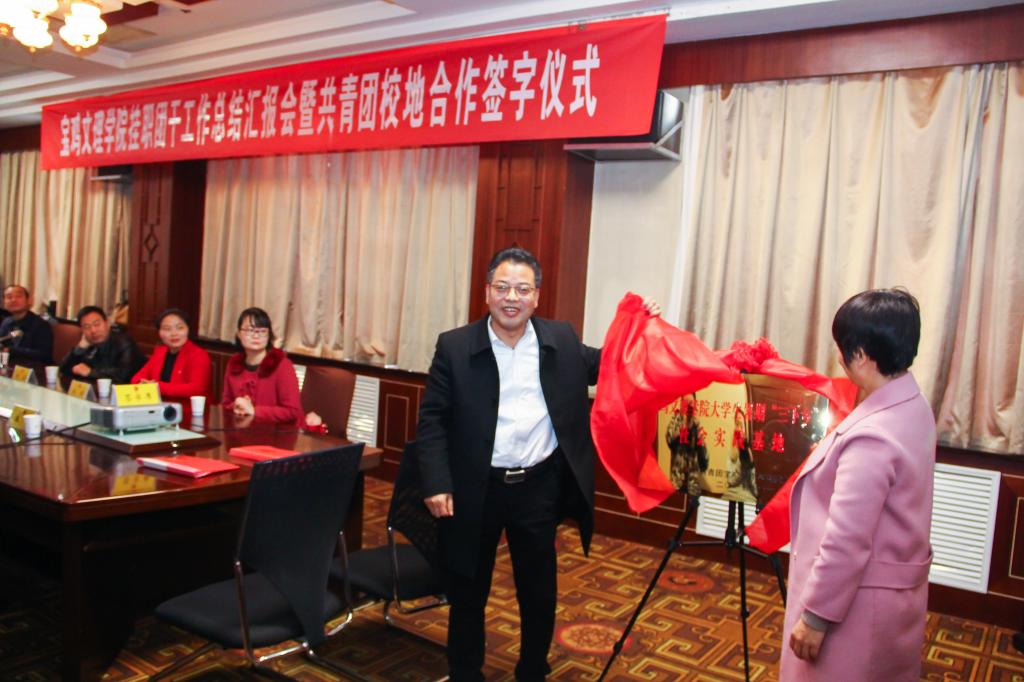 会上,校团委与凤翔县团县委签订了共青团校地合作协议,双方本着“校地联系、校地共建、优势互补、共同发展”的原则,决定合作建立“宝鸡文理学院大学生暑期‘三下乡’社会实践基地”,并以此为平台,广泛开展大学生社会实践、关爱农民工子女及留守儿童、扶贫支教、生态保护等方面的交流与合作。栾宏和王继萍共同为宝鸡文理学院大学生暑期“三下乡”社会实践基地揭牌。