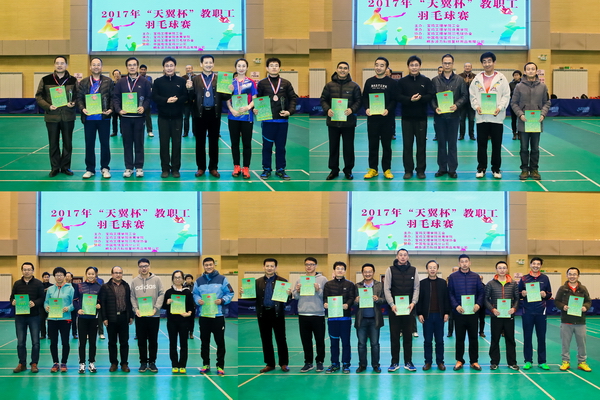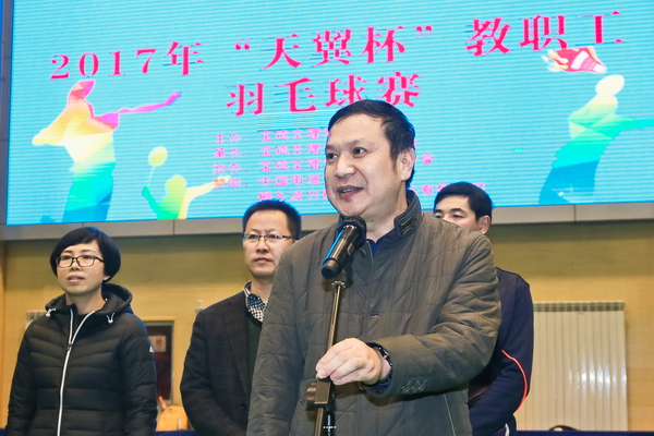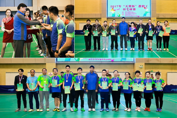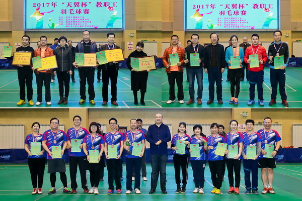 12月4日至12月8日,2017年“天翼杯”教职工羽毛球赛在新校区体育馆举行。校党委书记白黎出席开幕式并宣布比赛开始,党委副书记傅志军为团体和单项比赛冠军颁发了奖杯、奖牌和证书。