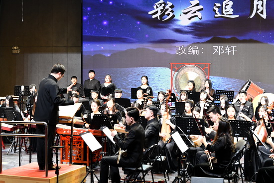 音乐会由音乐学院青年教师邓轩担任指挥,分为上、下半场,共演奏了11首观众耳熟能详的民族管弦乐优秀曲目。
