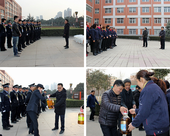栾宏、王富平一行先后深入新老校区保卫处、物业管理中心、学生社区管理中心等单位,给坚守一线的工作人员送去节日祝福和慰问品,对他们的辛勤付出表示衷心感谢,并祝愿大家春节愉快。校领导详细了解了假期校园安全管理等方面情况,希望相关部门值班人员牢记责任,安全工作,确保全校师生度过一个欢乐祥和的春节。