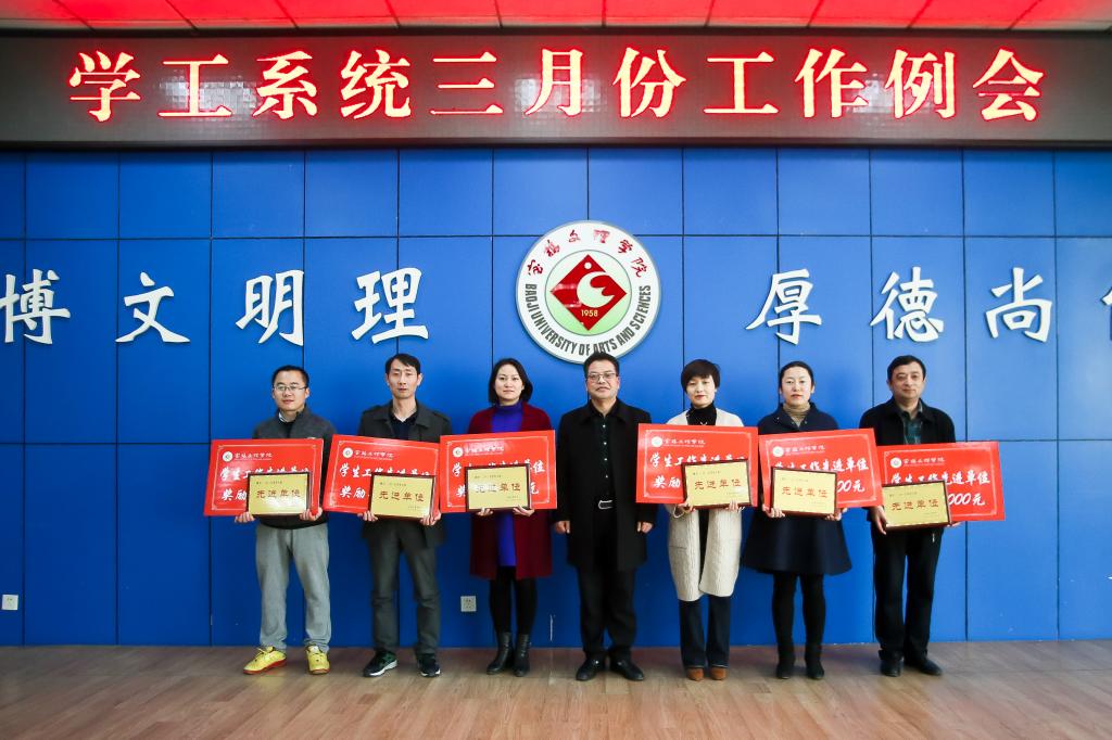 会议对获得2017年“学生工作先进单位”的电子电气工程学院、外国语学院、化学化工学院、计算机学院、地理与环境学院、教育学院等6个二级学院进行了表彰奖励。
