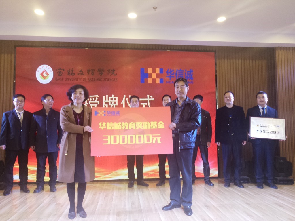3月14日上午,计算机学院与宝鸡华信诚电子科技有限公司校企合作签约暨华信诚教育奖励基金启动仪式在宝鸡市渭滨区互联网产业园举行。校党委副书记栾宏出席启动仪式并为宝鸡华信诚电子科技有限公司授牌,渭滨区区委常委、副区长段葆青为计算机学院颁发了教育奖励基金。仪式由渭滨区工信局局长徐新军主持。