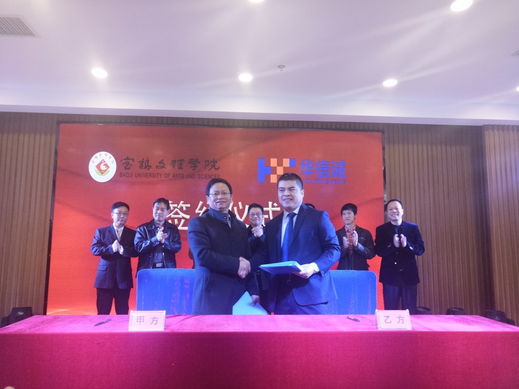 活动中,计算机学院院长刘鹏辉和宝鸡华信诚电子科技有限公司总经理杜海卫共同签署了《宝鸡文理学院计算机学院与宝鸡华信诚电子科技有限公司校企合作协议》。
