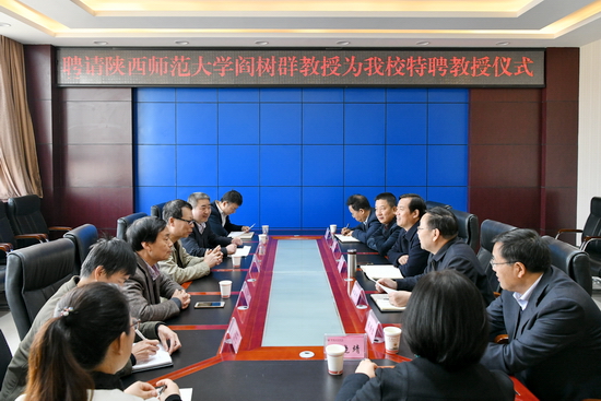 3月27日上午,陕西师范大学马克思主义学院学术委员会主任、二级教授、博士生导师阎树群教授受聘为我校思想政治理论课特聘教授,聘任仪式在新校区图书馆806会议室举行,副校长杨子元出席聘任仪式,仪式由党政办主任田延峰主持。